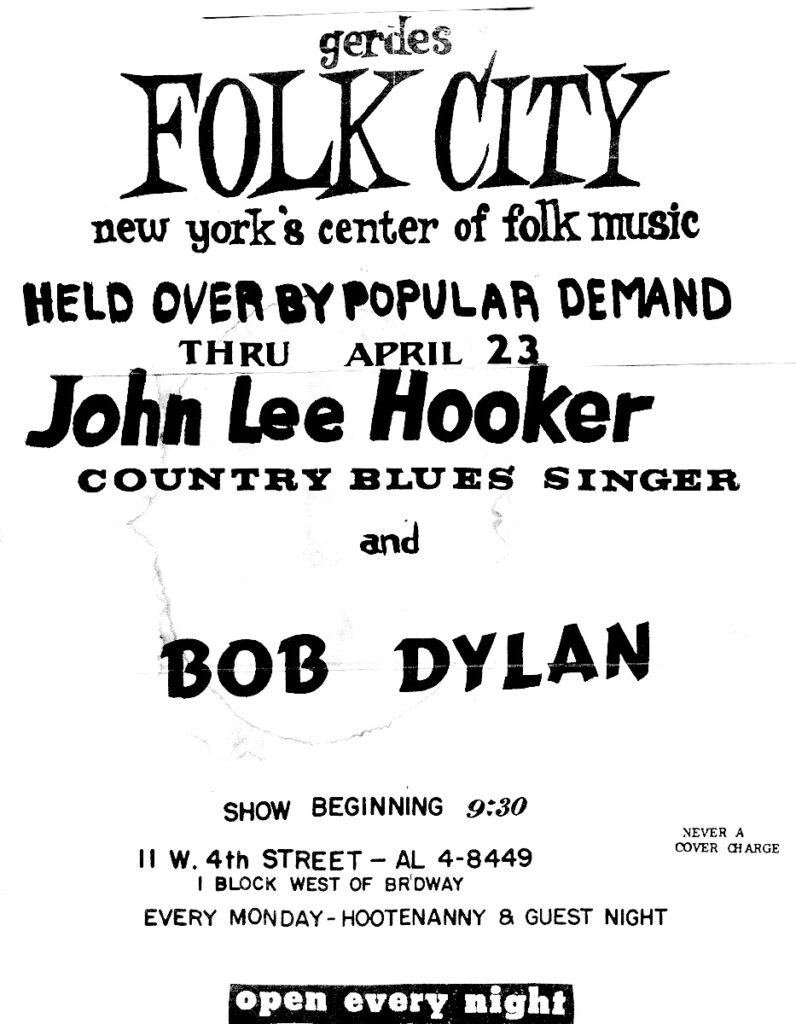 Then Dylan and I met again on the street. He said, “You got a typewriter, don’t you?” “Yes, I do.” “I want to use it.” “OK. Here are the keys. I’ll show you where I live. And by the way, it’s right next door to the Village Gate. So, if there is anything you want to listen to or want to eat or have something to drink you can just walk through the door with this key and you are in the Gate.” “OK.”