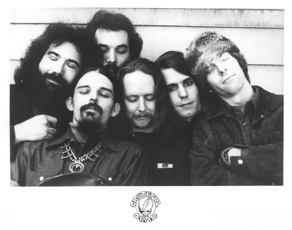 The Grateful Dead in 1972. First Warner Bros. Records publicity shot with new pianist Keith Godchaux. l. to r.: Bill Kreutzmann, Godchaux, Bob Weir, Jerry Garcia, Phil Lesh, Ron “Pigpen” McKernan (from the band’s website, used with permission)