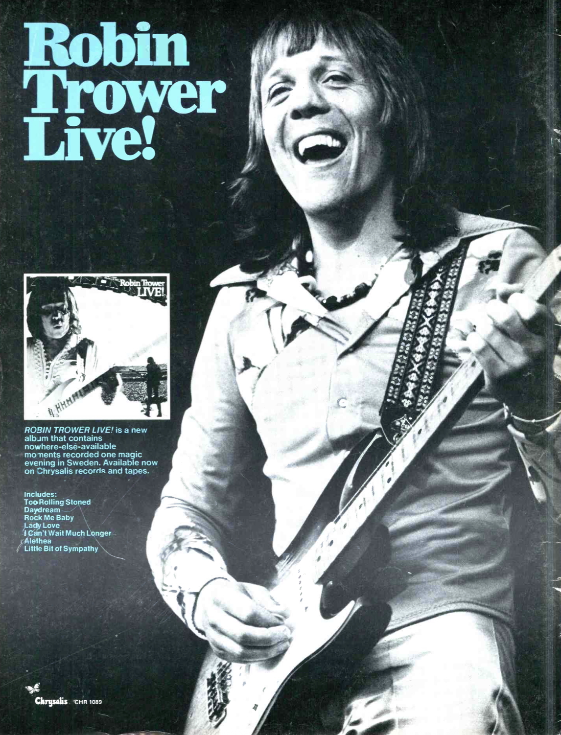 The 50th anniversary edition of Live! includes five previously unreleased tracks from the 1975 Stockholm performance, offering for the first time the complete setlist as it was originally performed. The recording showcases the electrifying chemistry between Trower, James and Lordan — widely regarded as one of the finest live bands of the era. The blistering set includes searing live versions of fan favorites like “Too Rolling Stoned,” “Bridge of Sighs,” “Day of the Eagle,” “Rock Me Baby,” and many more.