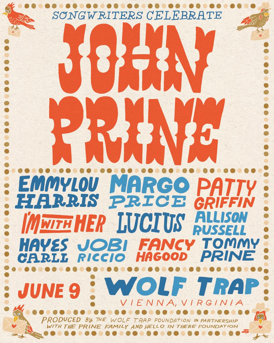June 9 Songwriters Celebrate John Prine, with Emmylou Harris, Margo Price, Patty Griffin, Lucius, Wolf Trap, Vienna, VA